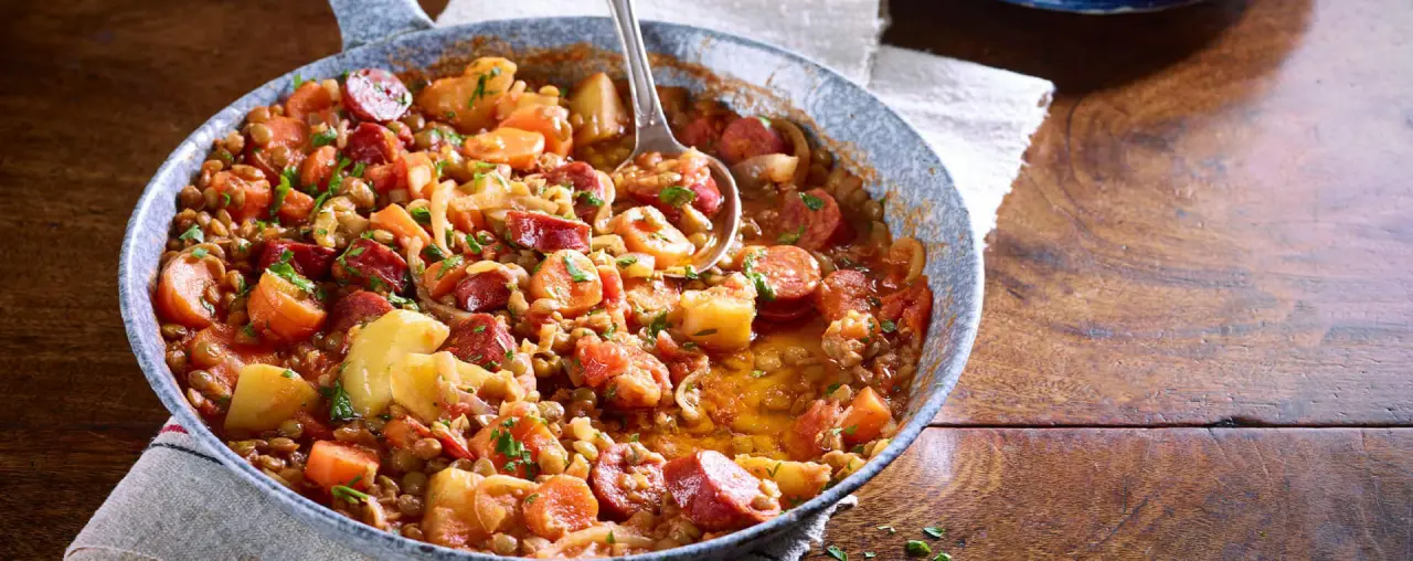Let’s face it, few dishes are more synonymous with winter comfort foods than stews. Cozying up to a steaming bowl of stew on a cold evening is exactly what the season calls for. This Lentil Chorizo and Vegetable Stew is just the kind of recipe to warm you up on a cold evening. Loaded with juicy veggies like onions, carrots, celery, garlic, and tomatoes, it’s a savory stew that’s sure to satisfy. What’s more, you can make it in just 30 minutes.