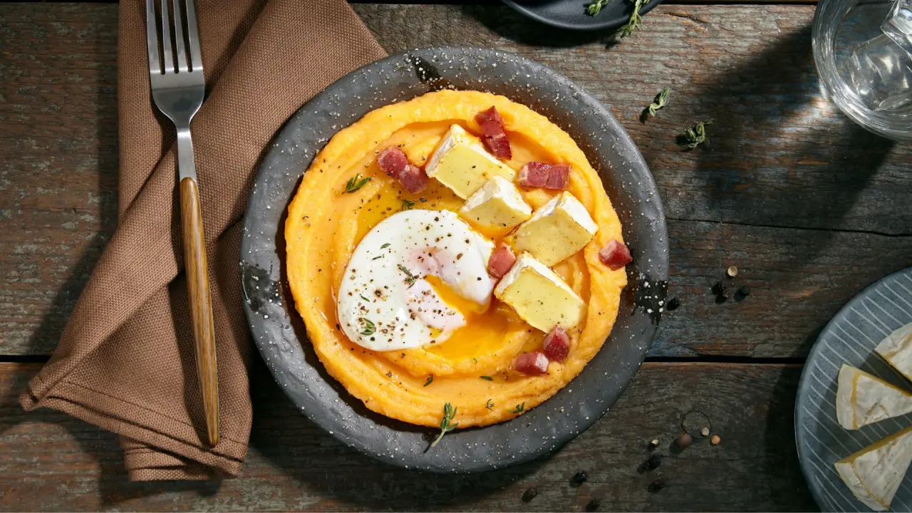 Lovers of mashed potato recipes are in for a treat. This Mashed Potato and Pumpkin Puree with Brie Cheese, Bacon, Poached Egg and Truffle Oil is simply exploding with flavor. As crowd-pleasing as a potato dish can possibly get, mash or puree is a terrific way to meld diverse flavors together.