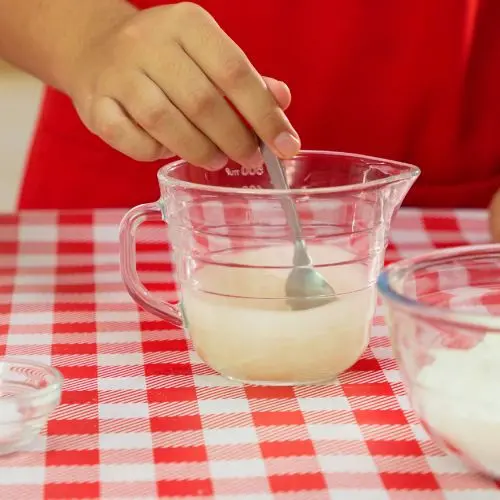 Dissolve just 1 teaspoon of all the yeast in warm water and mix everything well.