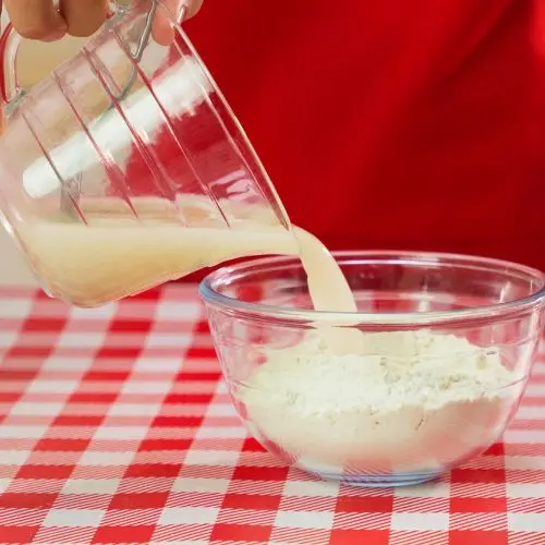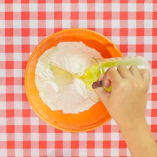 Combine the remaining fresh yeast with wark mil and incorporate that into the olive oil.