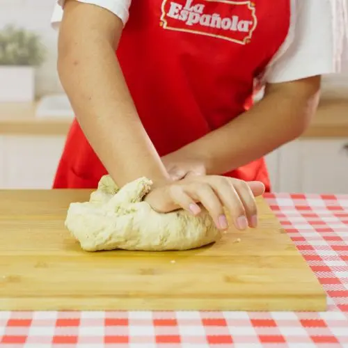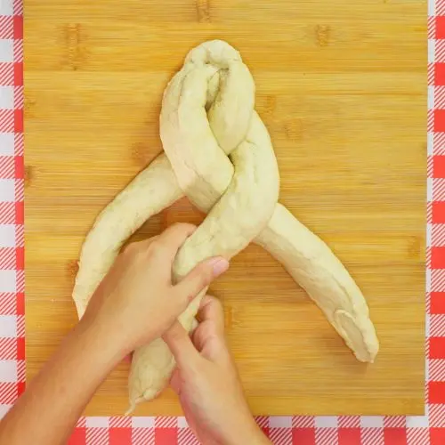 After this time, cut the dough into 3 pieces and roll each piece into cylindrical strands. Join one end of each strand and braid them carefully.